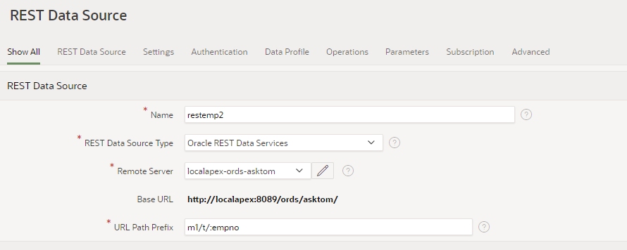 Your data source is based on the first endpoint /m1/t, not the /m1/t/:empnoYou do not need the function and the second endpoint (/m1/t/:empno) to create just the same data source. You can also delete the second endpoint now, and the data source will continue working in the same way. If you keep the second but delete the first endpoint, then the data source stops working at all.